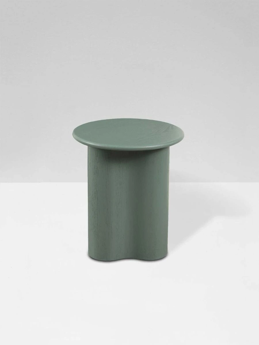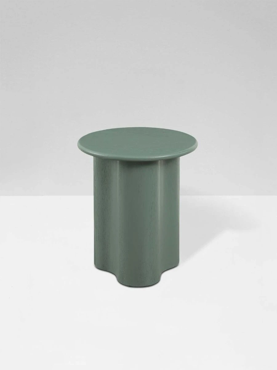 An abstract pillar base makes the Artie Wave side table in Eucalyptus a standout choice to lend drama to any room. It is designed in timber veneer for a durable finish.
