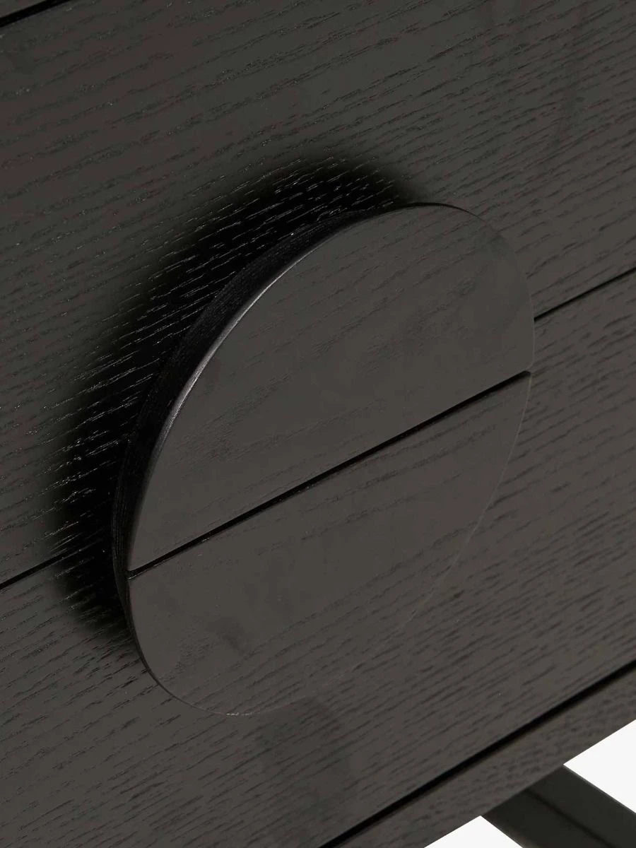 The classic bedside table with a bold twist. The Benjamin Bedside features classic strong lines and merges it with a modern touch for an eclectic look. The wood case offers spacious drawers where all your nighttime essentials are easily at hand. A solid wood button-like handle adds an innovative touch and showcases your distinct personality