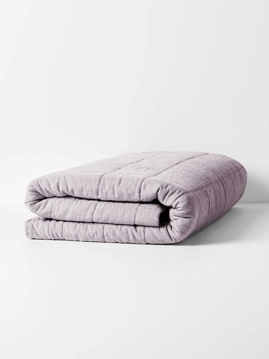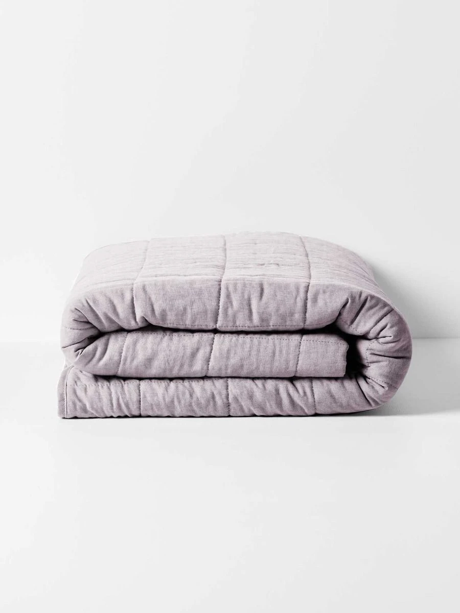 Our luxurious linen cotton Chambray Coverlet in Lilac has been woven in stunning natural shades and pre washed to achieve its tactile, natural softness. Designed for contemporary living and featuring a classic square pattern stitched over a 300gsm cotton fill. Perfect for easy layering, adding warmth and style to your bed. As the nights become warmer, a pure cotton filled Coverlet is the perfect alternative to a quilt cover.