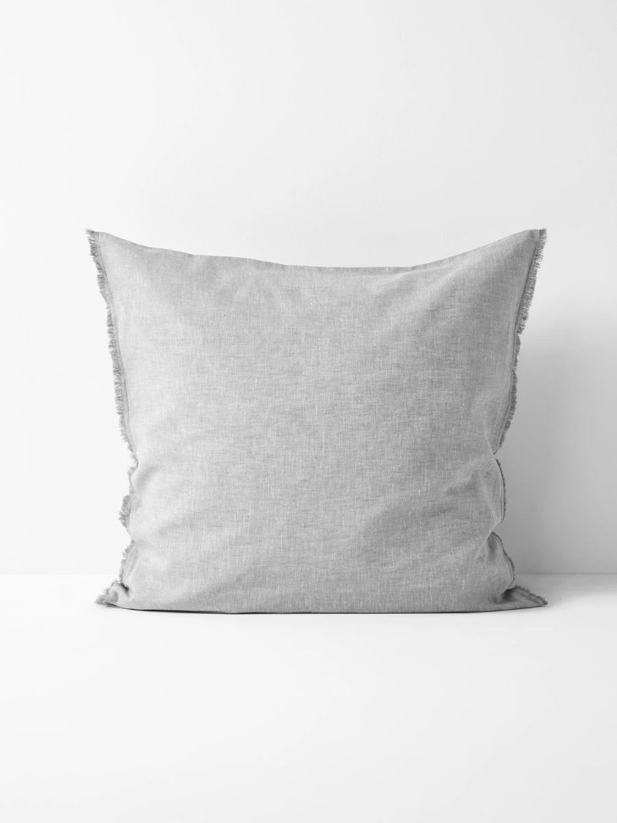 The dove colour has been blended with subtle threads of white to provide a vintage aesthetic that feels truly special. And what’s more, the fabric has been pre-washed to create a delicious tactile allure that you can’t help but be drawn to. It’s finished with delicate frayed edges and an invisible zipper closure on the lower edge.