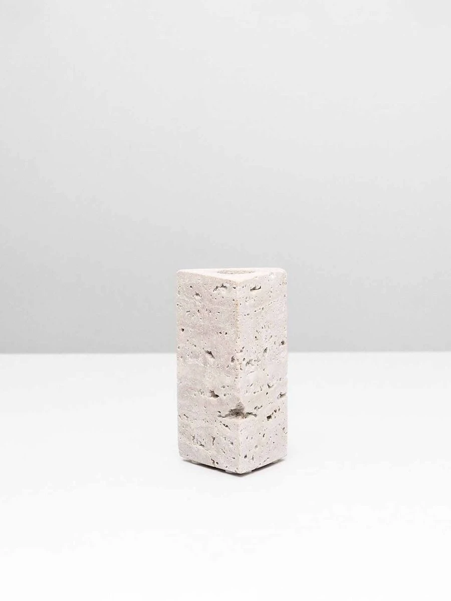 Crafted from solid travertine, our Deity Candlestand celebrates chic and minimal style. This beautiful, triangular candlestand exists like a sculpture and will add a touch of the artistic to your space. For a fresh and playful aesthetic, try pairing two or more Deity candlestands of different heights together and complete the look with contrasting coloured taper candles.