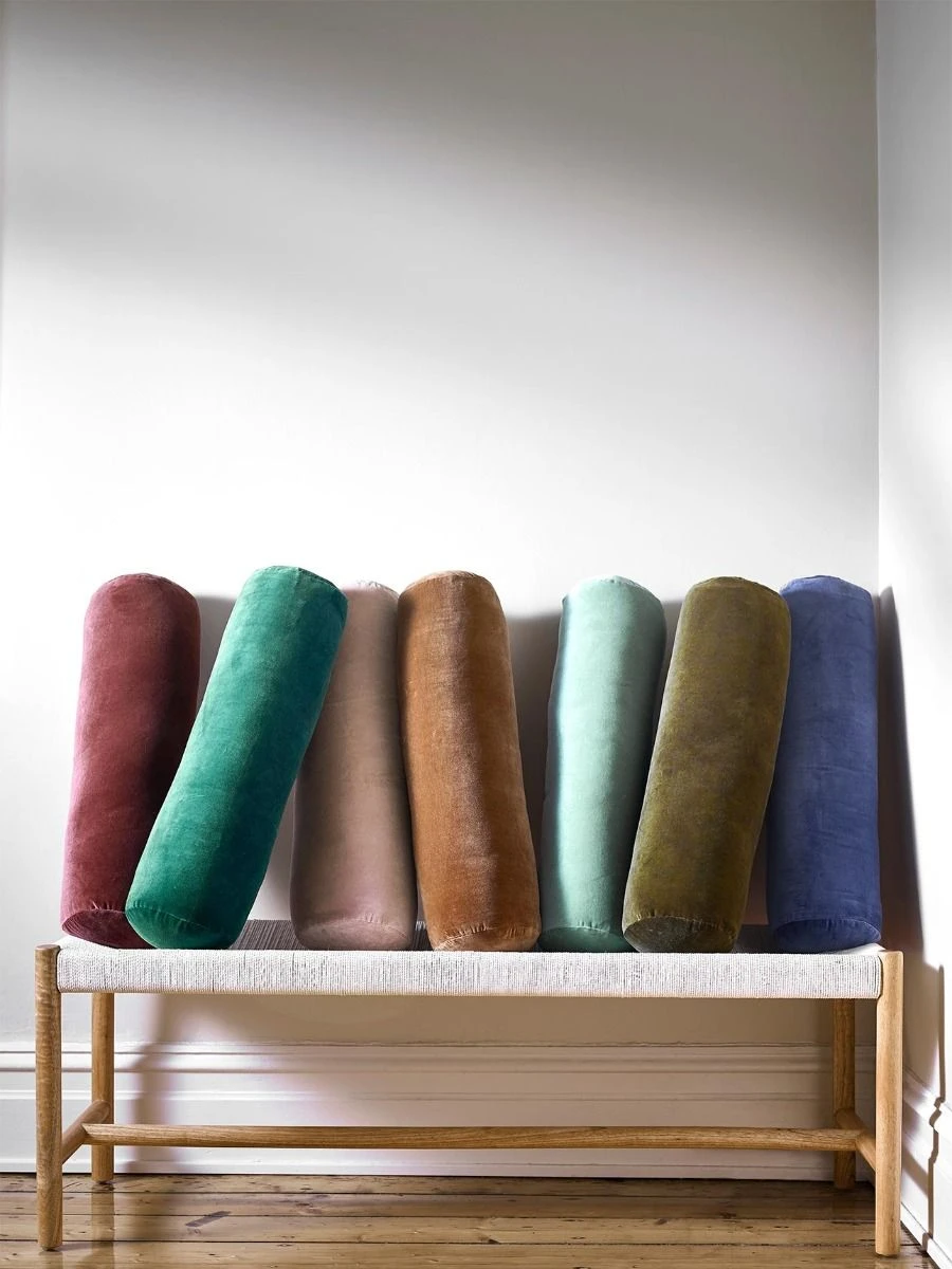 Our new velvet bolsters in Indian Teal have been woven in a luxurious pure cotton velvet and finished with our signature gold zipper.