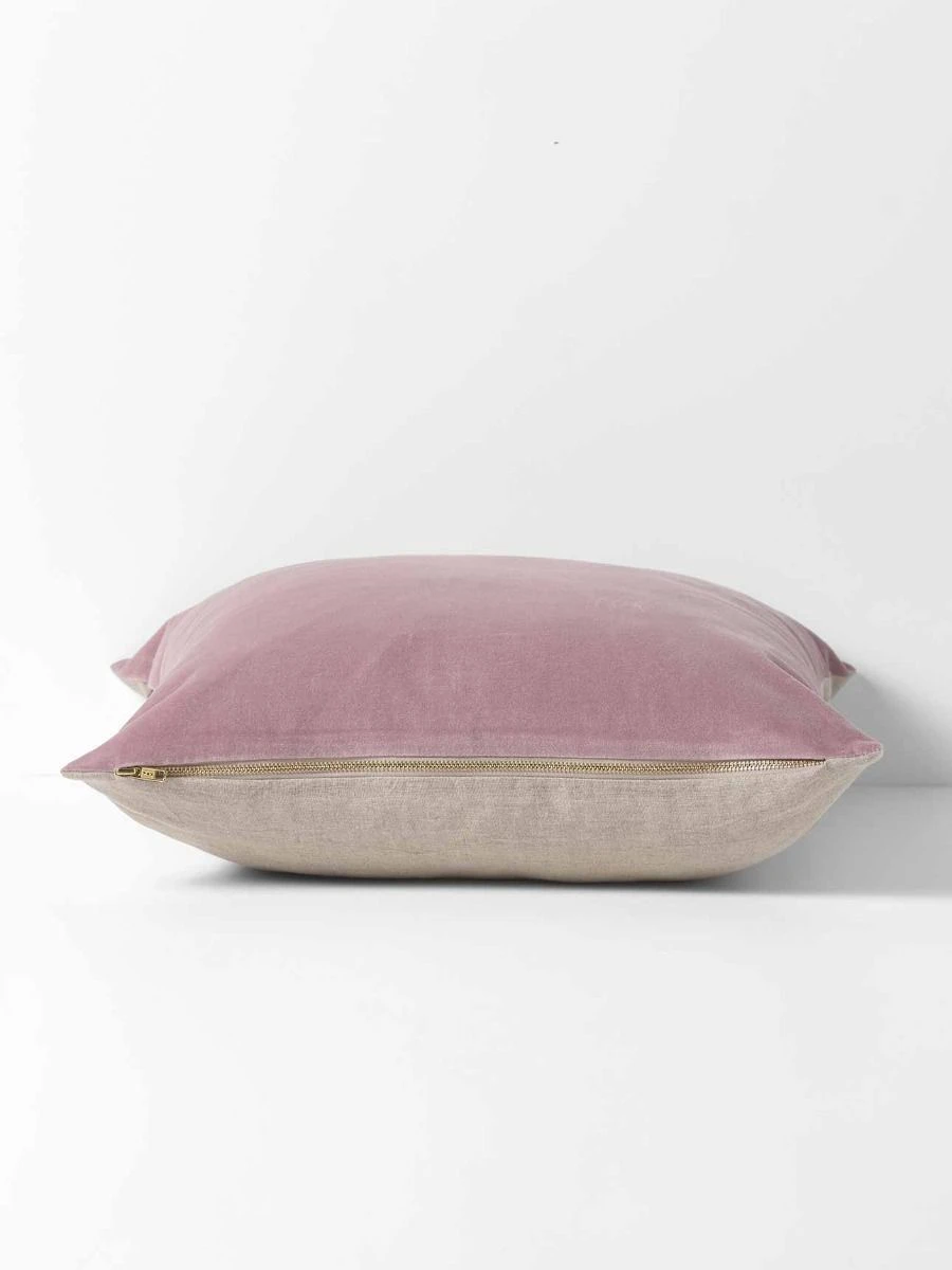 Pure Cotton Velvet reversing to Pure Linen. Our Velvet Cushion in Heather has been woven in a luxurious pure cotton velvet, finished with our signature gold zipper.