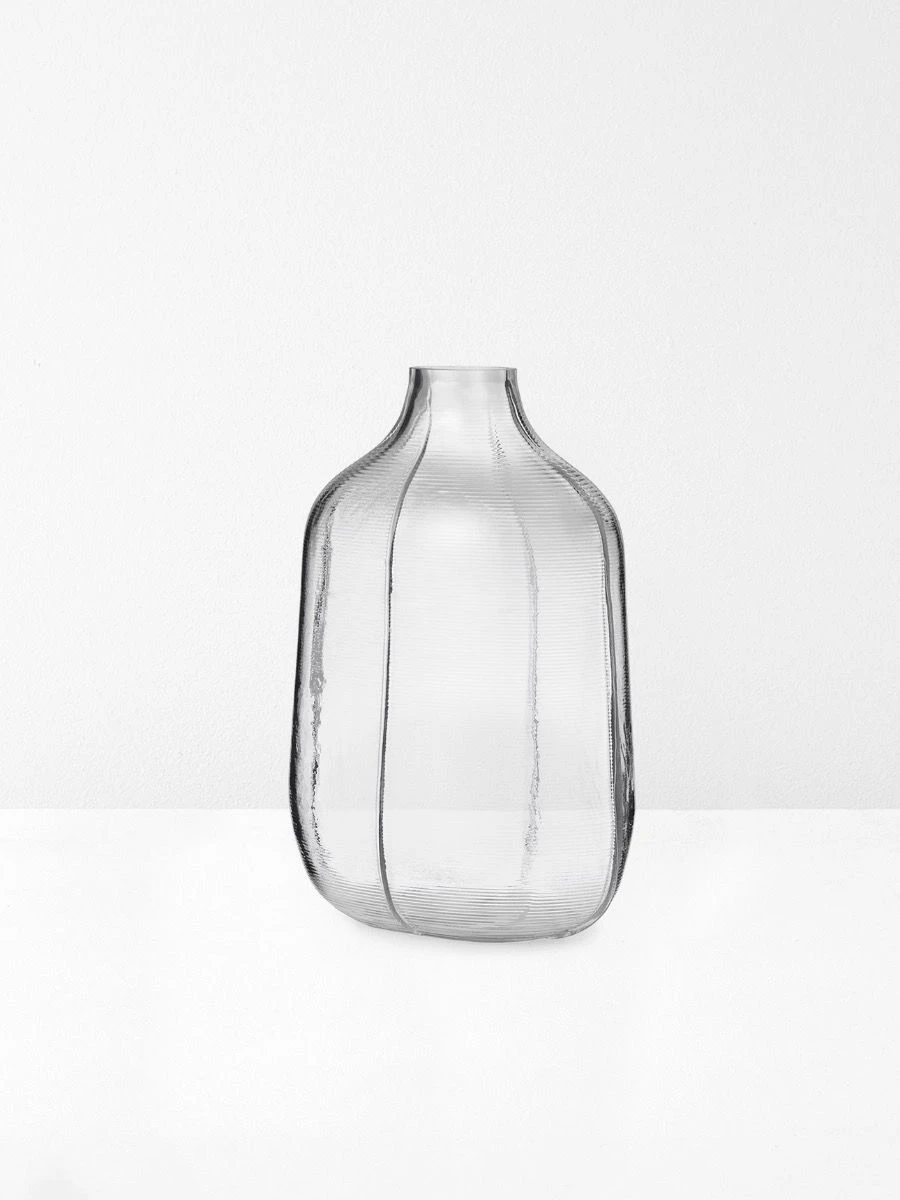Introducing the Large Step Vase in Clear. The shapes of the Step vases have been build up– step by step – from horizontal layers, which come together to give the vases their stunning surface texture and beautiful appearance. Soft and flowing silhouettes provide contrast to the pattern’s straight lines, creating balance in the design. The vases are not completely circular, which gives each vase a different organic nature, all depending on your angle of view. The Step vases look stunning on their own or in a group and are available in Amber, Blue and Clear. Normann Copenhagen was founded by Jan Normann Andersen and Poul Madsen in 1999, with a vision to make a difference in the design industry. Normann Copenhagen aims to be a go-to destination for those looking to furnish, decorate and style their homes, restaurants and offices. With a range characterised by simple design, clean lines and distinct character, Normann Copenhagen embodies the Scandinavian design rationale perfectly, they believe heavily in functionality and injecting a unique personality into everything they make.Â