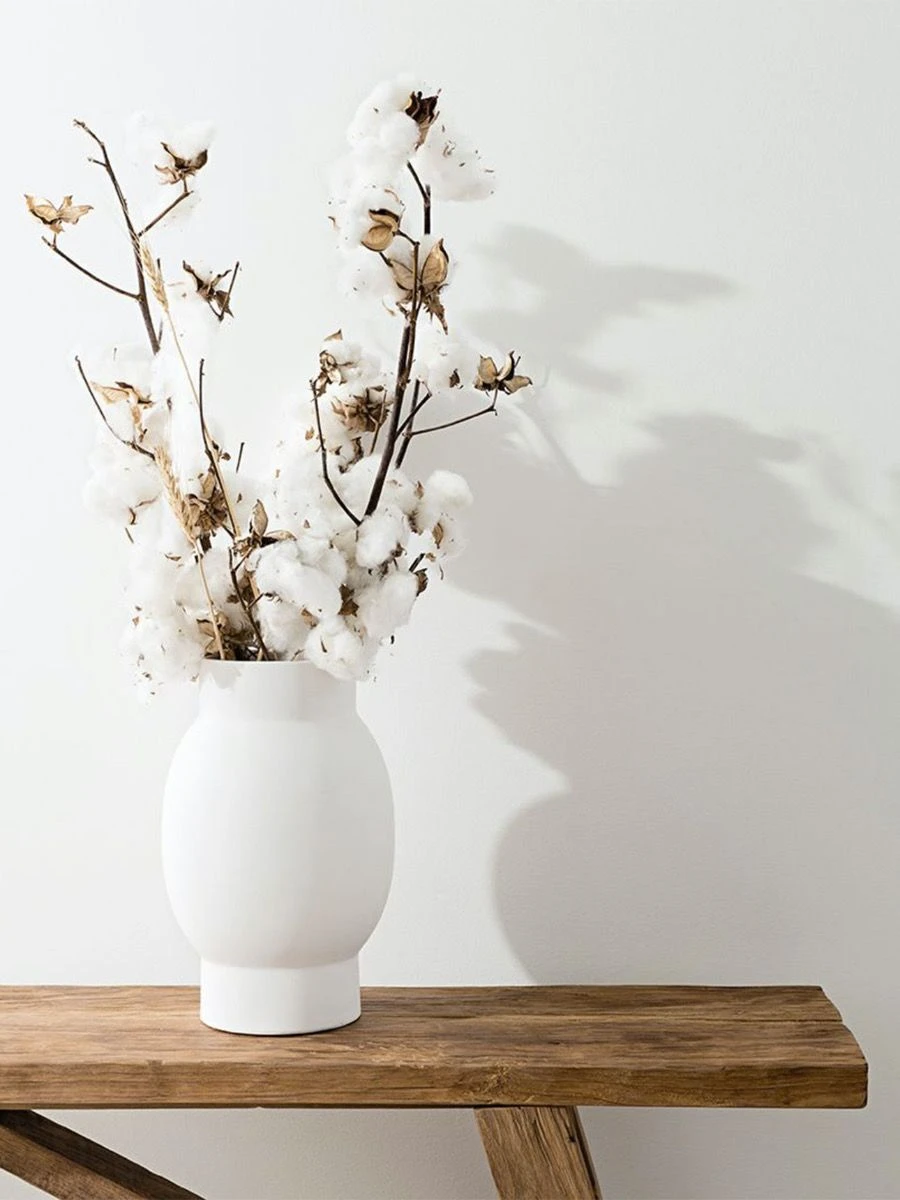 A classic white fine ceramic vase, delicate and sculptural decorative piece to use in your living space.