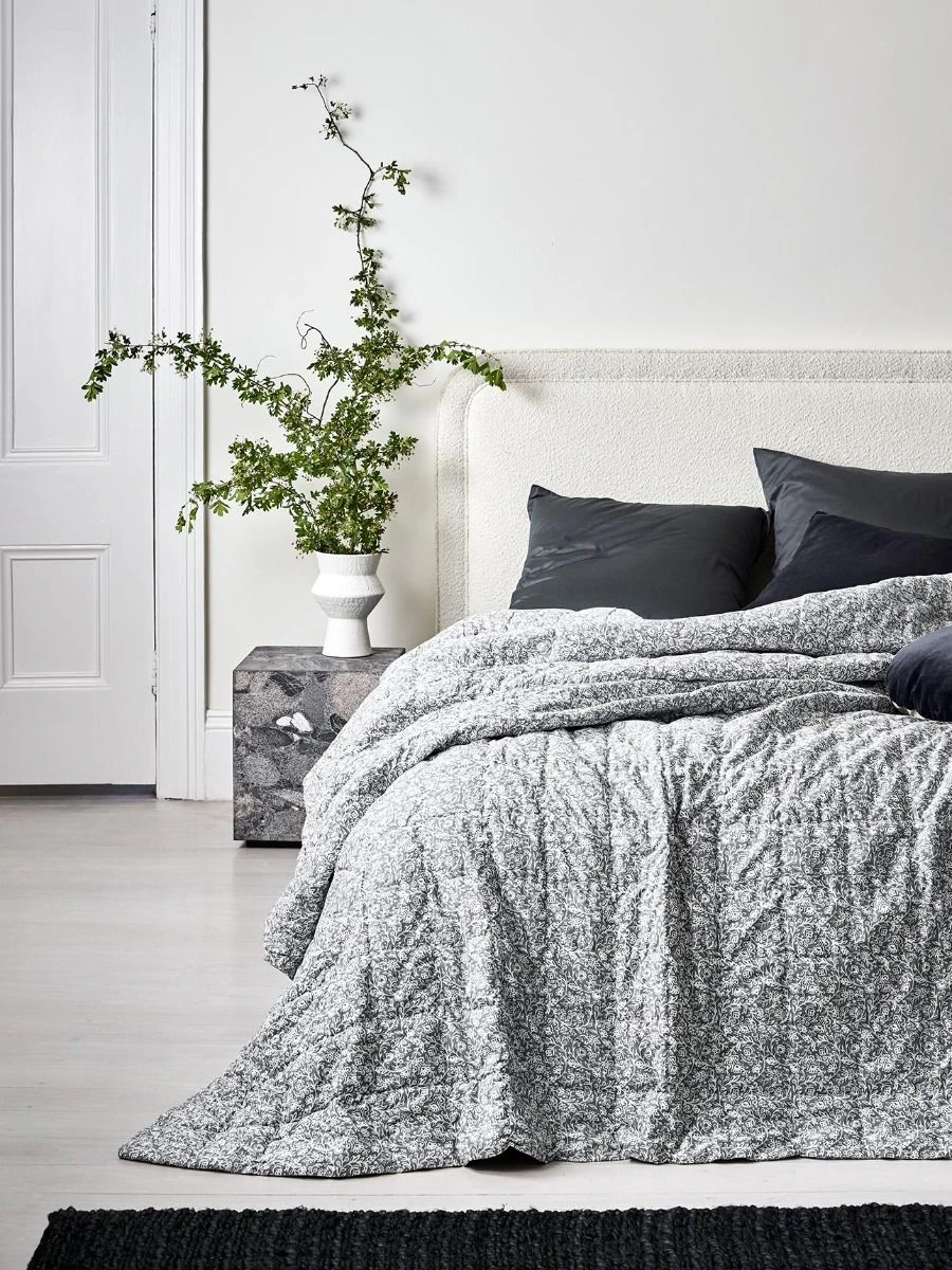 It is said that Varanasi is older than history, older than tradition, older even than legend. A centre for pilgrimage and spirituality, the ‘great city on the Ganges’ has long been known for its exquisite floral prints, or ‘Buti’, a tradition that stretches back centuries. Our new Varanasi Coverlets and Pillowcases draw inspiration from that style, with a palette that’s 100% Aura Home. Available in contemporary Hazelnut, Mist & Feather, and featuring hand-ties on all pillowcases, Varanasi is the perfect accompaniment to your bedroom setting.