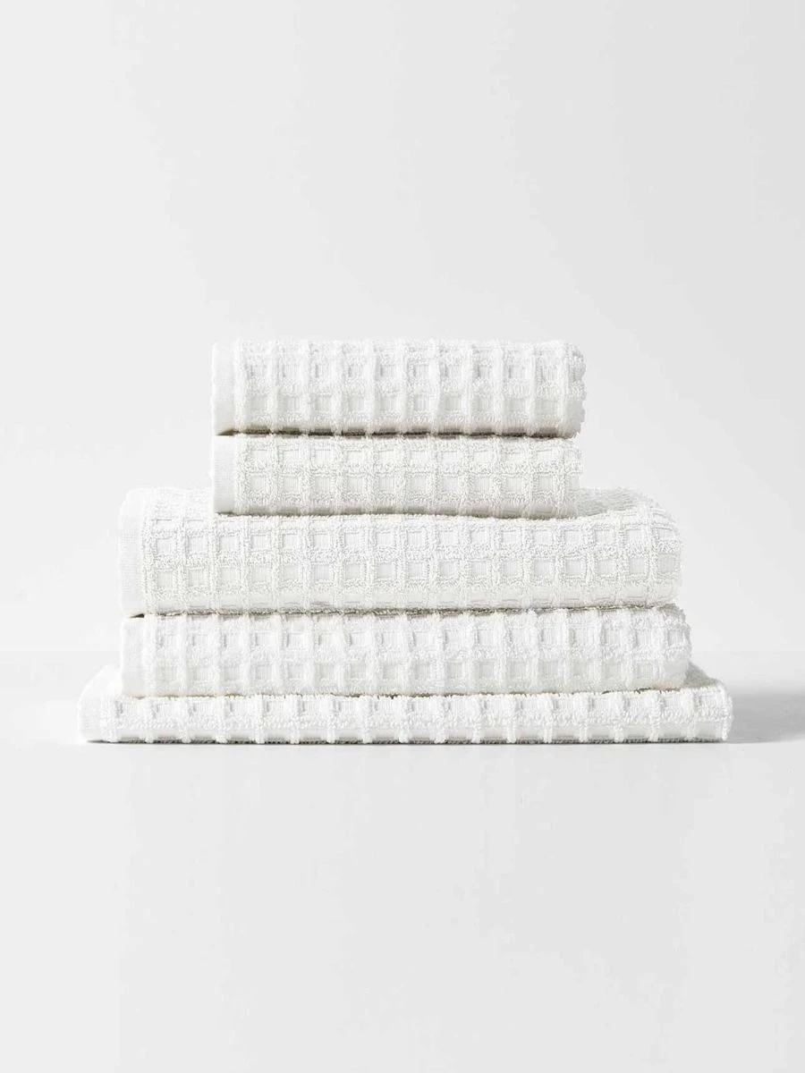 - Set includes: 2 x bath towels, 2 x hand towels, and 1 x bath mat