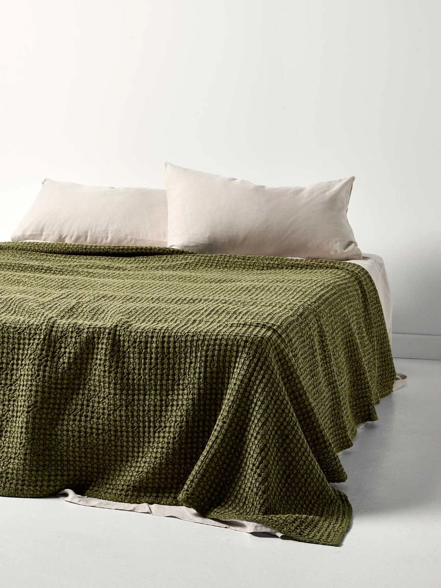 Feel at home with our cozy waffle bed cover. Softly textured and available in a soothing palette of natural tones, our pure cotton bed covers are the perfect way to add that extra layer in the colder months. Their beautiful tactile waffle texture, paired with a stonewash finish, is the ideal way to add texture and comfort to any room of your home this season.