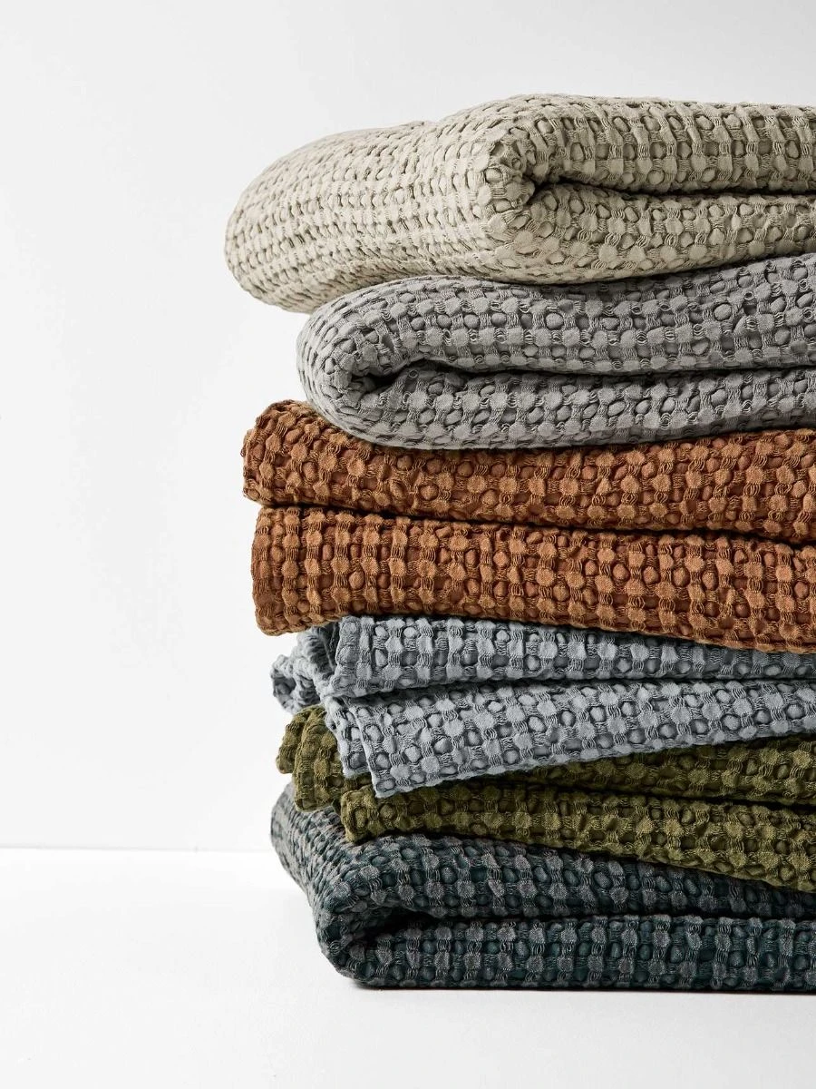 Feel at home with our cozy waffle bed cover. Softly textured and available in a soothing palette of natural tones, our pure cotton bed covers are the perfect way to add that extra layer in the colder months. Their beautiful tactile waffle texture, paired with a stonewash finish, is the ideal way to add texture and comfort to any room of your home this season.
